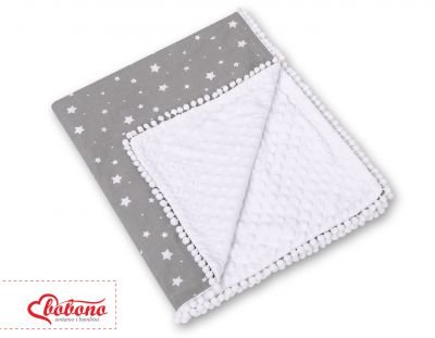 Divpusēja sega Minky ar pomponiem – mini zvaigznītes balts