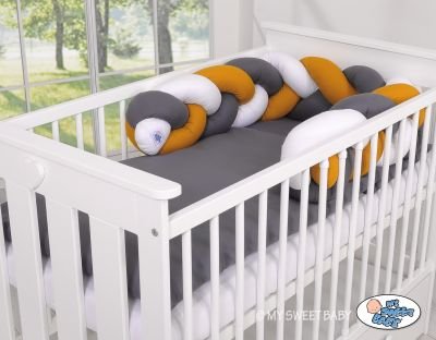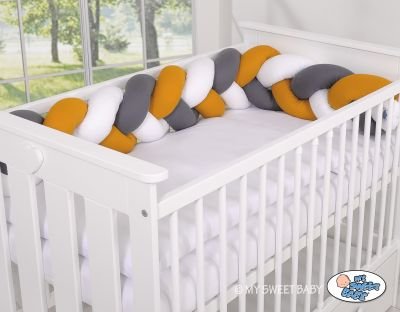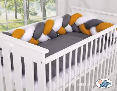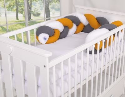 Skaists, ļoti mīksts pīts gultiņas buferis no 100% kokvilnas. Var piestiprināt pie stieņiem.