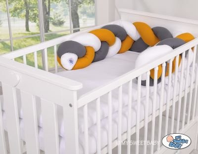 Buferis pasargā jūsu mazuļa rokas un kājas no iesprūšanas starp vārpstām, kā arī aizsargā mazuļa galvu un ķermeni no triecieniem pret gultiņas sienām. Kontaktligzdu var piestiprināt pie stieņiem ar komplektā iekļautajām kokvilnas bantēm.