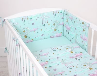 Izmēri: garums 155 cm (+/- 2 cm), augstums 32 cm. Īpaši izstrādāts ar papildu vītnēm. Lieliski piemērota abu izmēru gultiņām: 60x120cm un 70x140cm.