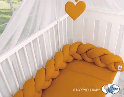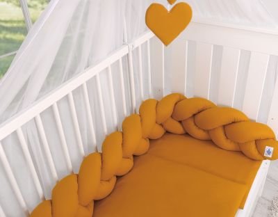 Skaists, ļoti mīksts pīts gultiņas buferis no 100% kokvilnas. Var piestiprināt pie stieņiem.