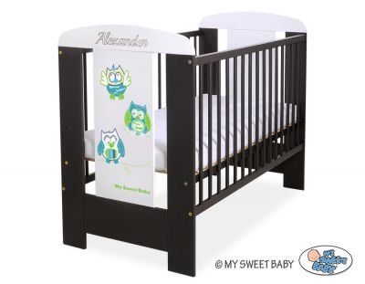 priekšpuse un aizmugure ir izgatavotas no skaidu plātnes ar melamīna pārklājumu. Gultiņas priekšā ir grafisks attēls, kas iederas gultas veļā Owls Bigi Zibi & Adele.