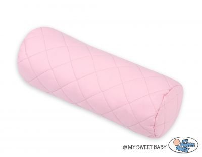 Elegants stepēts spilvens. Ārējais audums no sertificētas stepētas kokvilnas (nebojājošs). Pildījums spilvena iekšpusē ir Eco Fillball sertificētas silikona bumbiņas – “mākslīgās pūkas” spilveniem – pildījums nodrošina pareizu mazuļa nostāšanos un gaisa cirkulāciju. Lieliski piemērota kā bērnu istabas dekorācija. Rullīšu spilvens ir pilnīgs – bez noņemama spilvena pārvalka. Šis ir jauks komplekts ar mūsu gultas veļu.