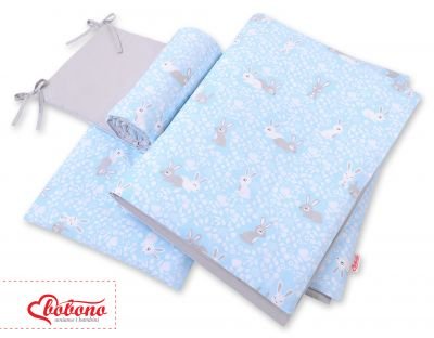 Divpusējs gultas veļas komplekts 3gab – zils trusis/pelēks