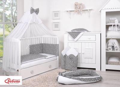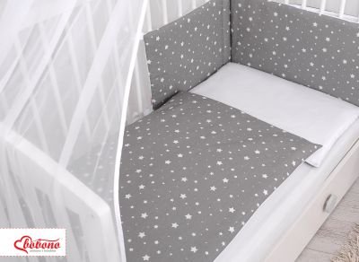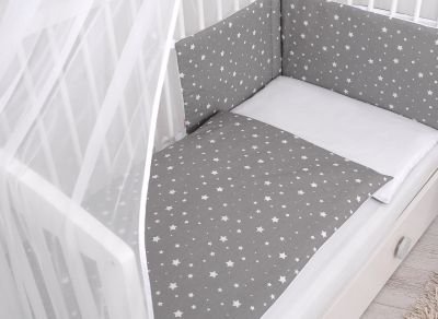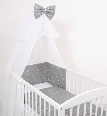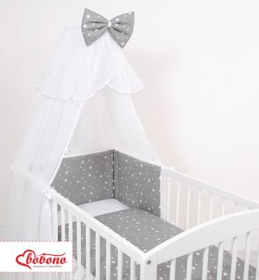 Divpusējs gultas veļas komplekts 5gab ar moskītu tīklu – mini zvaigznes balts/balts