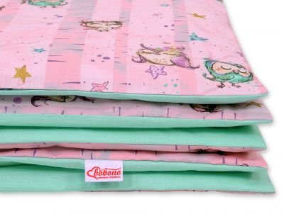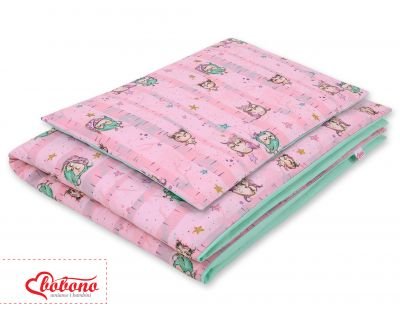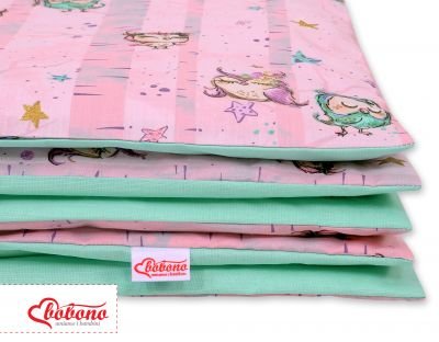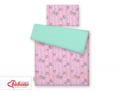 Gultas komplekts 2gb – pūce rozā-piparmētra