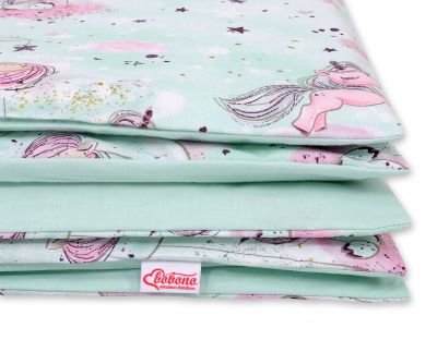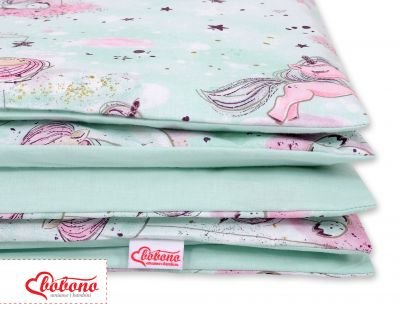 2. Segas pārvalks 120x90cm vai 135x100cm. Izgatavots no 100% kokvilnas auduma, sertificēts ar Oeko-tex Standard 100. Spilvens ir aiztaisīts ar iekšējo rāvējslēdzēju, kas atvieglo ātru gultasveļas maiņu. Komplekts piemērots uz gultiņu 120×60 cm vai 140x70cm.