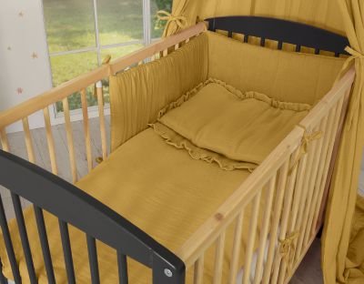 Mīksta un smalka muslīna bērnu gultasveļa, kas izgatavota no 100% sertificētas kokvilnas. Drošs maigai mazuļa ādai. Nedaudz saburzīts materiāls.