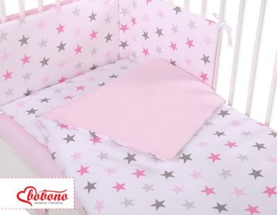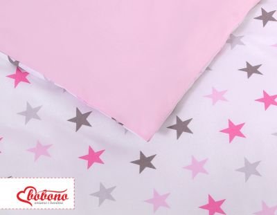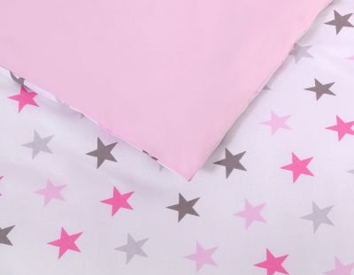 2. Divpusējs segas pārvalks 120x90cm vai 135x100cm. Izgatavots no 100% kokvilnas auduma, sertificēts ar Oeko-tex Standard 100. Spilvens ir aiztaisīts ar iekšējo rāvējslēdzēju, kas atvieglo ātru gultasveļas maiņu. Komplekts piemērots uz gultiņu 120×60 cm vai 140x70cm.