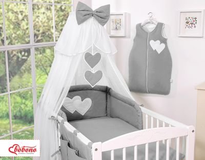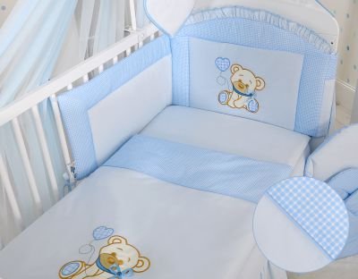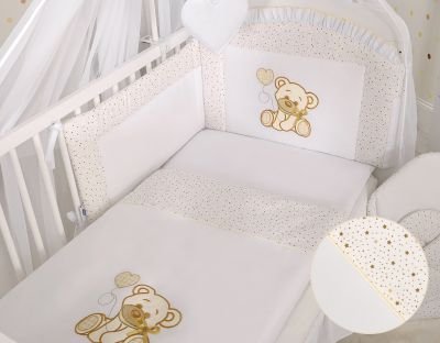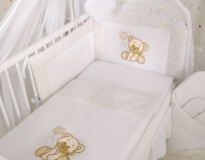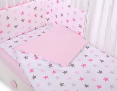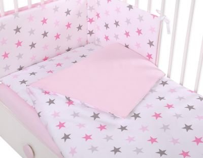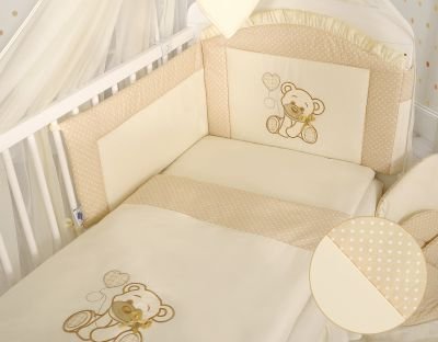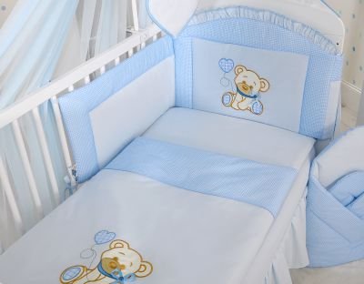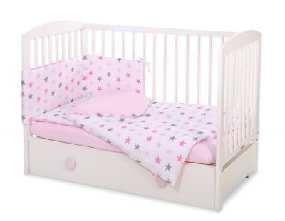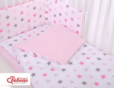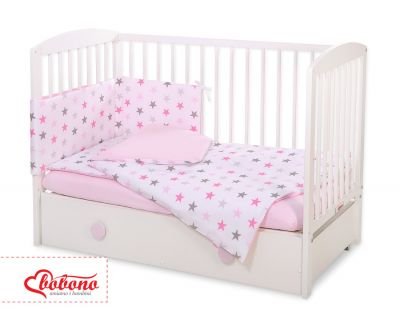 3. Universāls bamperis 40x180cm. Ārējais audums 100% kokvilna, polsterējums 100% poliesters. Lieliski piemērota abu izmēru gultiņām: 60x120cm un 70x140cm.