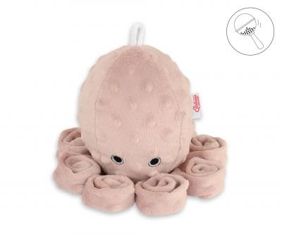 Jautrais astoņkājis ir lieliski piemērots katra mazuļa gulēšanai un pieglaudīšanai. Astoņkājis ir ideāls un drošs mazuļiem no pirmajiem dzīves mirkļiem. Maigas grabēšanas dēļ viņš pievērš sev bērna uzmanību. Izgatavots no mīksta pieskāriena, irdenas un mīkstas Minky vilnas. Pildījums spilvena iekšpusē ir Eco Fillball sertificētas silikona bumbiņas – “mākslīgās pūkas” spilveniem – pildījums nodrošina pareizu mazuļa nostāšanos un gaisa cirkulāciju.
