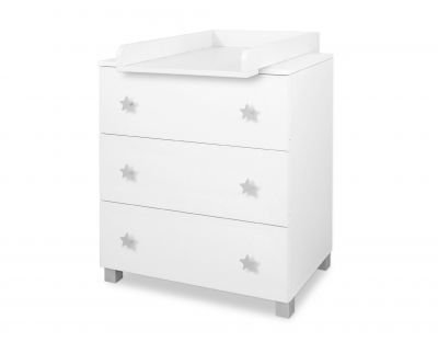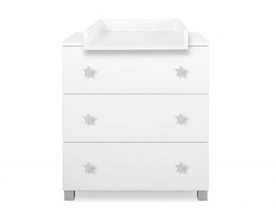 Skaista un funkcionāla kumode ar noņemamu pārsegu/pārtinamo paliktni atvieglo mazuļa kopšanu. Ļoti noderīga pirmajos dzīves mēnešos. Noņemot vāku, tas kalpos daudzus gadus. Kumodei ir 3 dziļas, ietilpīgas atvilktnes, kas uzstādītas uz rullīšu vadotnēm, kas nodrošina atvilktnes pilnīgu izbīdīšanu.