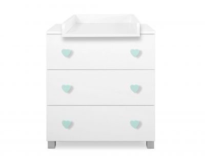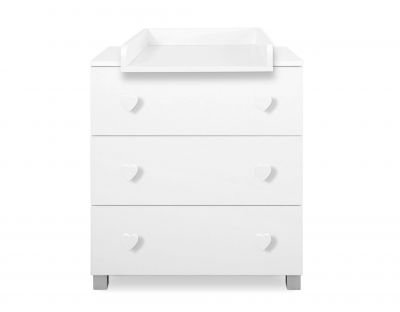Skaista un funkcionāla kumode ar noņemamu pārsegu/pārtinamo paliktni atvieglo mazuļa kopšanu. Ļoti noderīga pirmajos dzīves mēnešos. Noņemot vāku, tas kalpos daudzus gadus. Kumodei ir 3 dziļas, ietilpīgas atvilktnes, kas uzstādītas uz rullīšu vadotnēm, kas nodrošina atvilktnes pilnīgu izbīdīšanu.