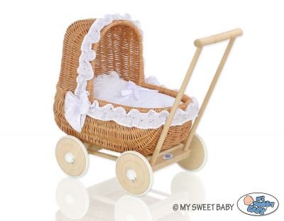 MY SWEET BABY leļļu rati ir augstākās kvalitātes produkti bērniem – izgatavoti no dabīgas klūgas (vītola) un koka, romantiski varianti krāsoti dažādās krāsās. Pateicoties rūpīgajam roku darbam, katra detaļa ir skaisti izcelta. Mani jaukie leļļu ratiņi ir lieliska dāvana mazai meitenei.