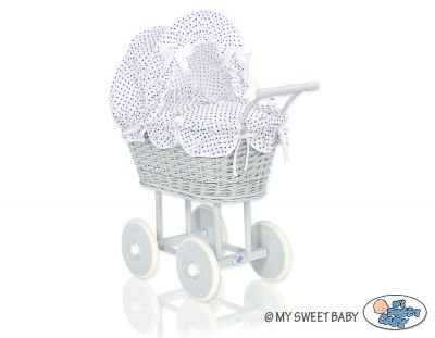 MY SWEET BABY leļļu rati ir augstākās kvalitātes produkti bērniem – izgatavoti no dabīgas klūgas (vītola) un koka, romantiski varianti krāsoti dažādās krāsās. Pateicoties rūpīgajam roku darbam, katra detaļa ir skaisti izcelta. Mani jaukie leļļu ratiņi ir lieliska dāvana mazai meitenei.