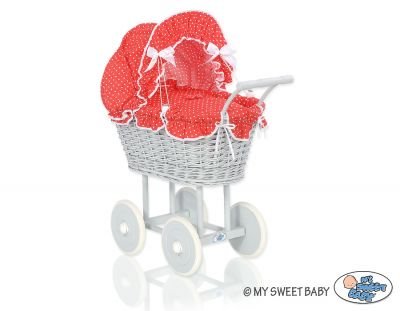 MY SWEET BABY leļļu rati ir augstākās kvalitātes produkti bērniem – izgatavoti no dabīgas klūgas (vītola) un koka, romantiski varianti krāsoti dažādās krāsās. Pateicoties rūpīgajam roku darbam, katra detaļa ir skaisti izcelta. Mani jaukie leļļu ratiņi ir lieliska dāvana mazai meitenei.