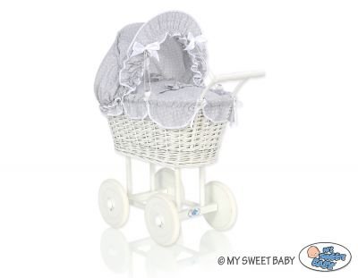 MY SWEET BABY leļļu rati ir augstākās kvalitātes produkti bērniem – izgatavoti no dabīgas klūgas (vītola) un koka, romantiski varianti krāsoti dažādās krāsās. Pateicoties rūpīgajam roku darbam, katra detaļa ir skaisti izcelta. Mani jaukie leļļu ratiņi ir lieliska dāvana mazai meitenei.