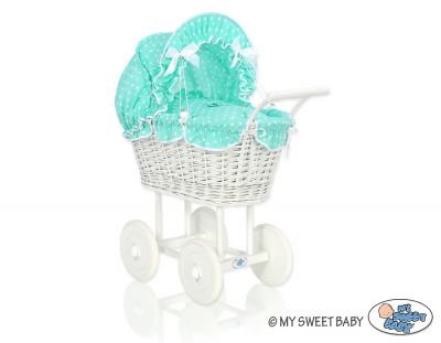 MY SWEET BABY leļļu rati ir augstākās kvalitātes produkti bērniem – izgatavoti no dabīgas klūgas (vītola) un koka, romantiski varianti krāsoti dažādās krāsās. Pateicoties rūpīgajam roku darbam, katra detaļa ir skaisti izcelta. Mani jaukie leļļu ratiņi ir lieliska dāvana mazai meitenei.