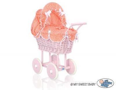 MY SWEET BABY leļļu rati ir augstākās kvalitātes produkti bērniem – izgatavoti no dabīgas klūgas (vītola) un koka, romantiski varianti krāsoti dažādās krāsās. Pateicoties rūpīgajam roku darbam, katra detaļa ir skaisti izcelta. Mani jaukie leļļu ratiņi ir lieliska dāvana mazai meitenei.