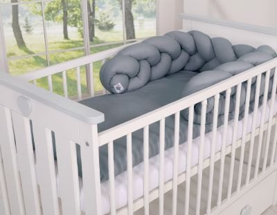 Skaists, ļoti mīksts pīts gultiņas buferis no 100% kokvilnas. Var piestiprināt pie stieņiem.