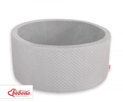 Baseins ir apaļš, 90 cm diametrā. Sānu augstums – 40 cm. Izgatavota no mīkstām putām. Noņemams, ar rāvējslēdzēju aiztaisāms pārvalks no mīkstas mīkstas vilnas.