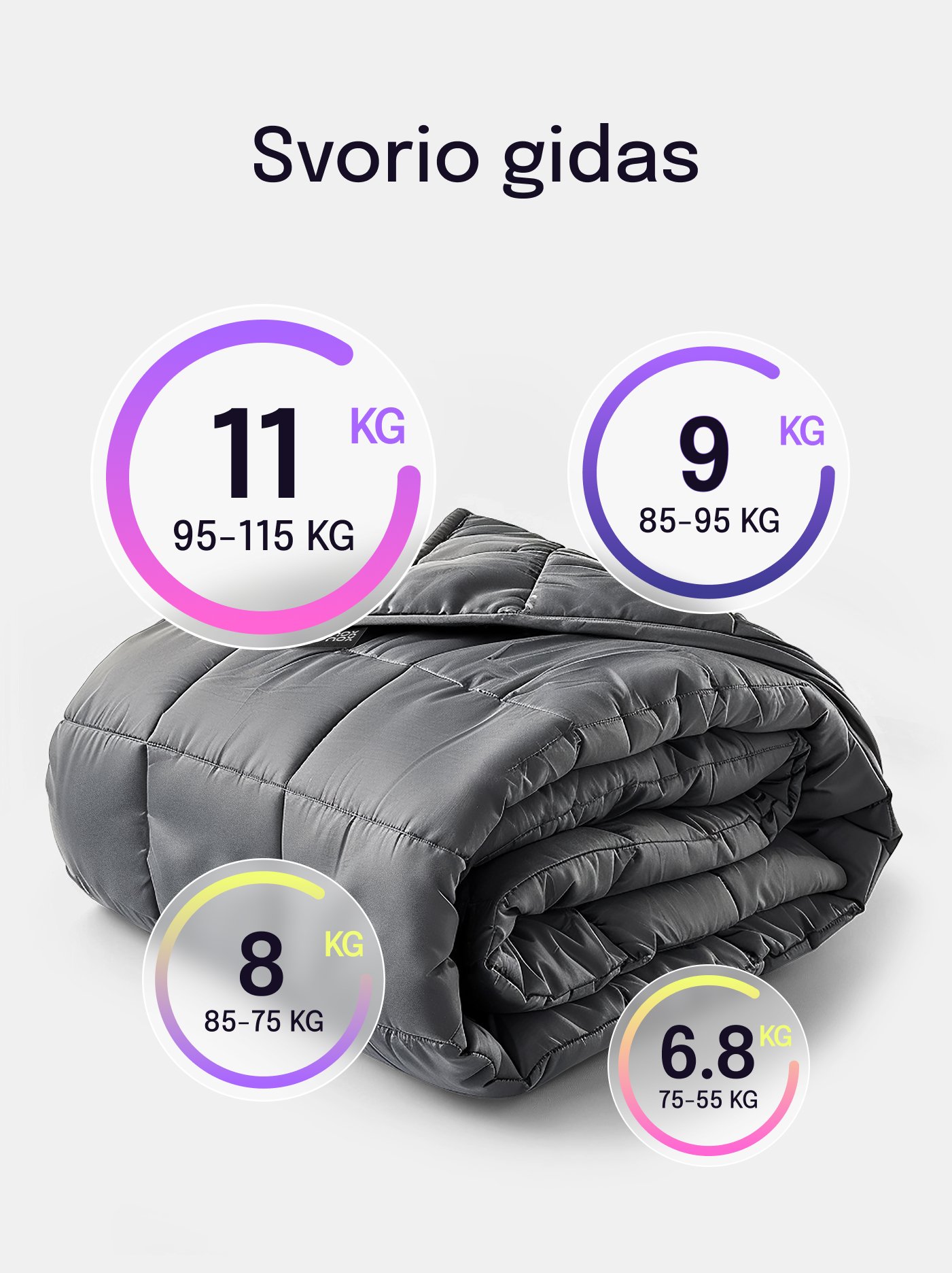 Priemonės aprašymas: Pasunkinta priemonė, pritaikyta pagal asmens svorį, skirta asmeniui užkloti ir prispausti gulint, propriorecepcijai stimuliuoti, hiperaktyvumui mažinti. Priemonės svoris turi būti 10–15 proc. naudotojo kūno svorio