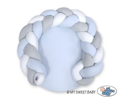 Pītais bamperis ir piestiprināts pie matrača ar īpašām kokvilnas bantēm, kas ļauj ērti izveidot ligzdu un ievietot tajā mazuli.